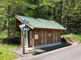 きれいなトイレ。その左に瀬戸の滝への案内がある。